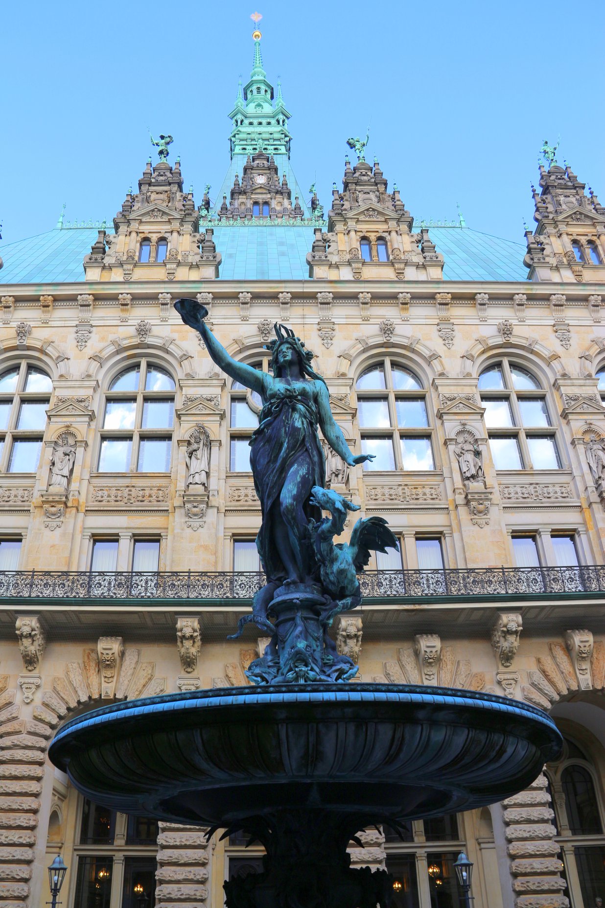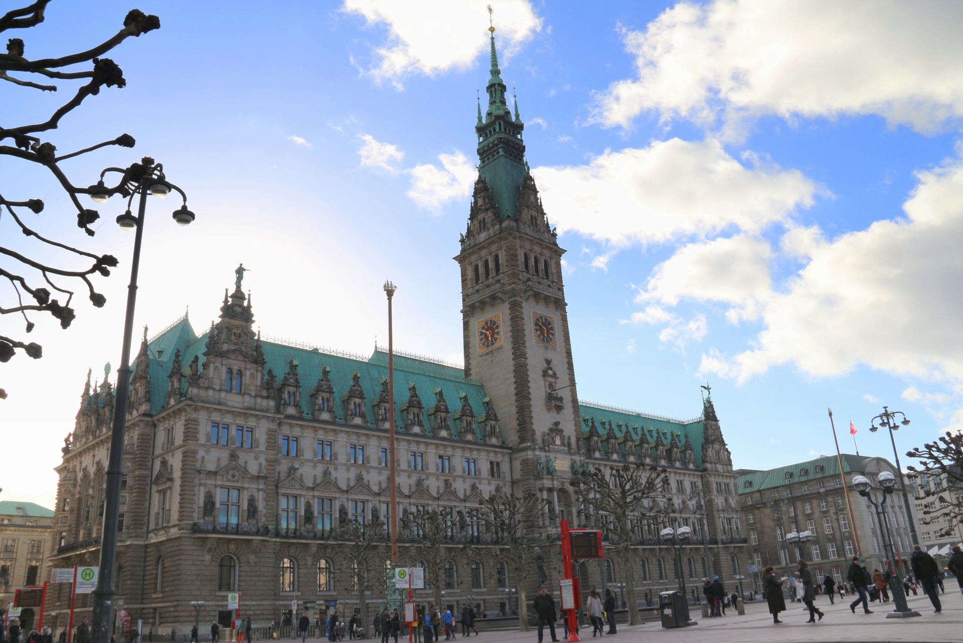 Feita essa etapa cultural, histórica e religiosa do passeio, é legal também conhecer a prefeitura, que fora construída entre 1886 e 1897, a imensa estrutura em estilo neorrenascentista é o símbolo da cidade. Essa é a quinta prefeitura da história de Hamburgo, sendo que as demais foram arrasadas em guerra e incêndios.