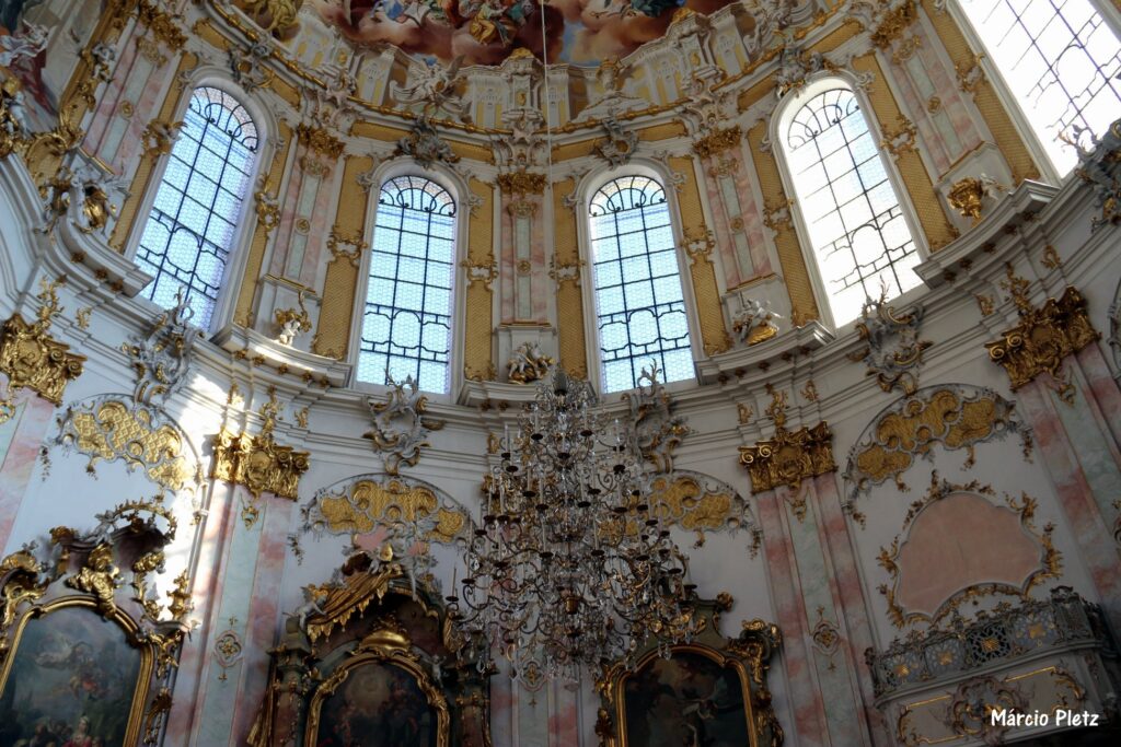 No interior da abadia, o estilo rococó chama a atenção. Em francês, rocaille, significa “concha”. Esse tipo de expressão artística está associado a certas formas decorativas como a técnica de incrustação de conchas e vidro. O estilo predominante do local foi elaborado por Johann Baptist e Johann Georg Ubelhör. Já os afrescos da abadia de Ettal são de autoria de Martin Knoller. Vale uma lenta contemplação de cada detalhe nas fotos.