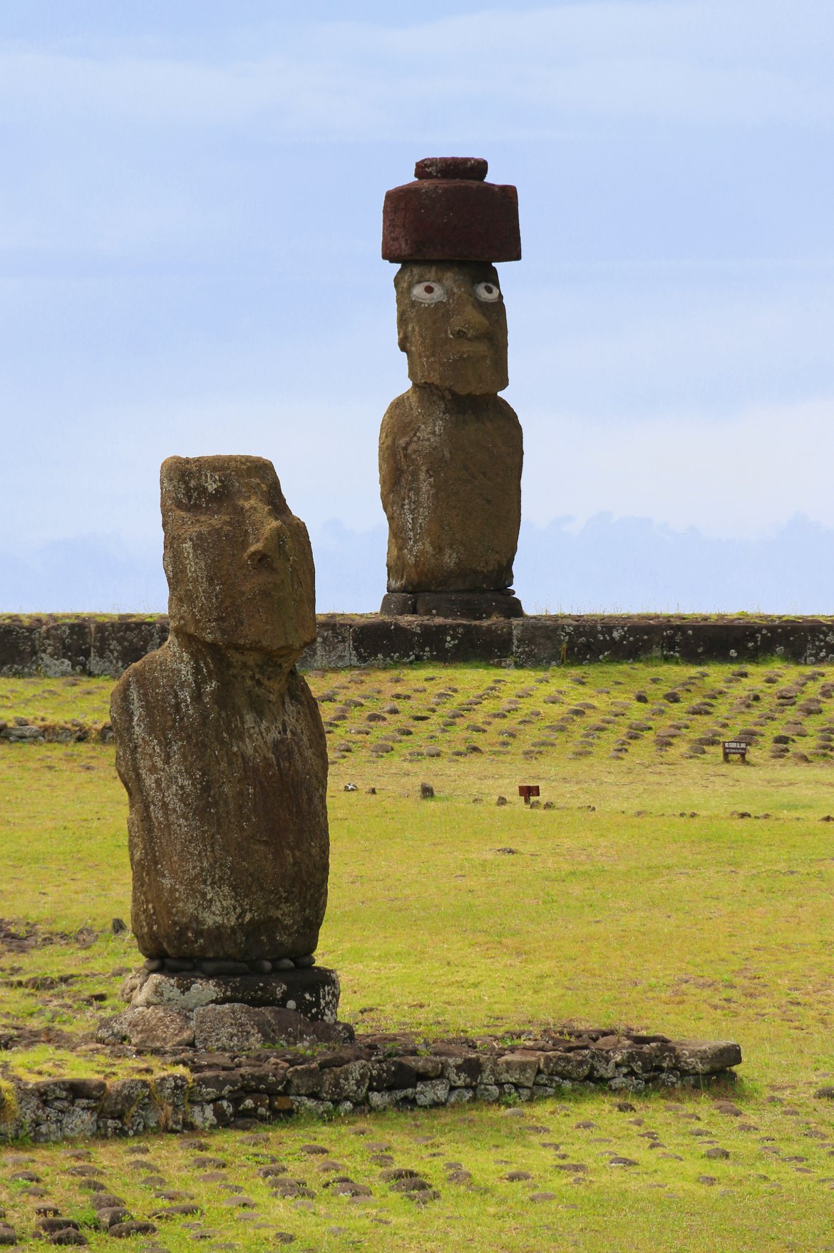 A Praia de Anakena guarda também, além de sua beleza, Moais. Chama a atenção aqueles que possuem o Pukao, uma espécie de chapéu vermelho que representa o cabelo dos ancestrais amarrados em forma de coque. Os chefes dos povos usavam o cabelo comprido e o amarravam em algo parecido com uma coroa.