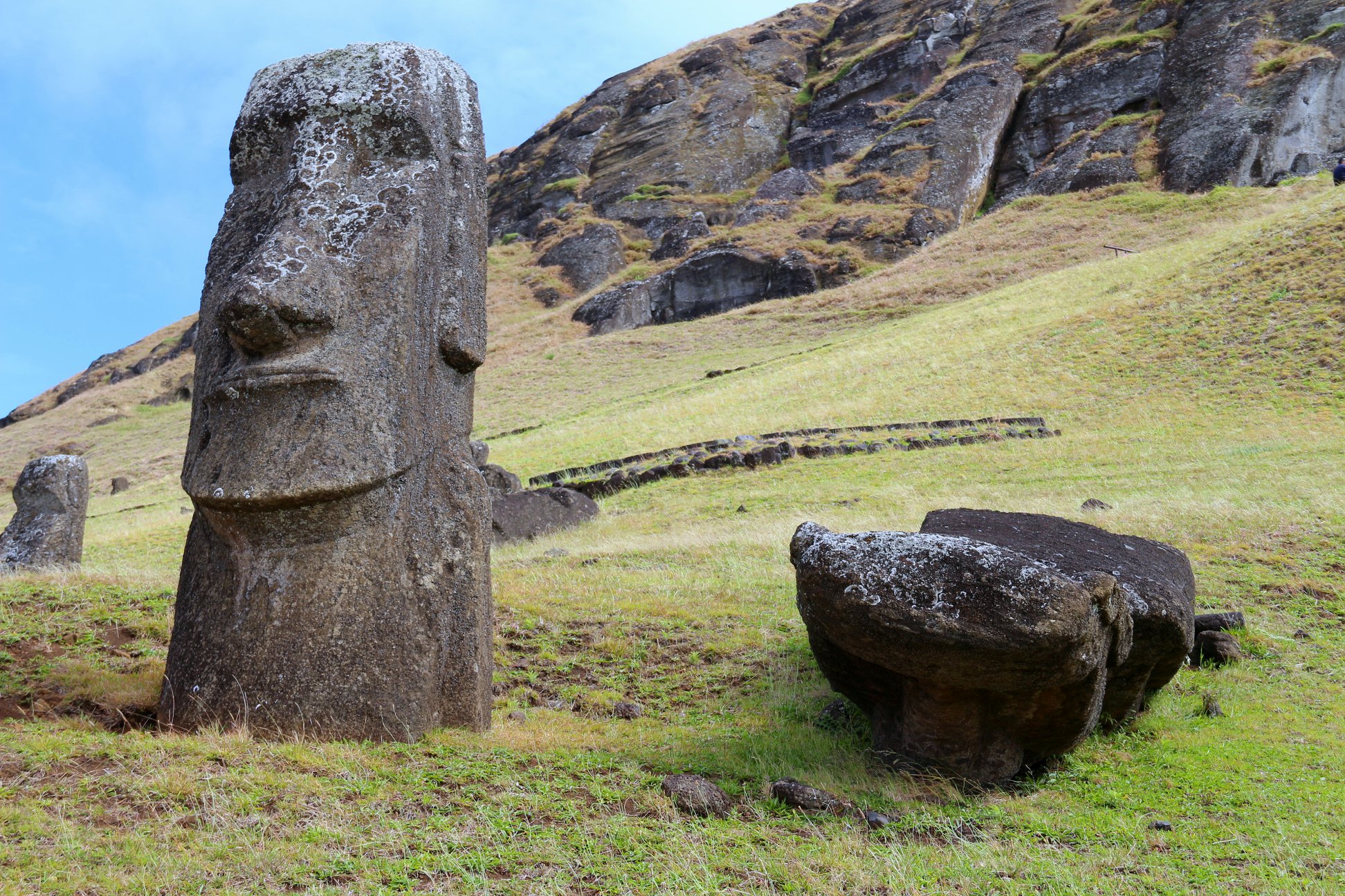 Um dos primeiros e mais importantes passeios na Ilha de Páscoa é pela Fábrica de Moais. Era de lá que as pedras eram retiradas e esculpidas até se transformarem nos históricos gigantes: os Moais; que são estátuas de pedra gigantescas, de 4,5 a 6 metros de altura (parte aparente) e de até 27 toneladas. Muitos Moais estão espalhados pela ilha. Alguns arrumados e realocados e outros mantidos conforme localizados.