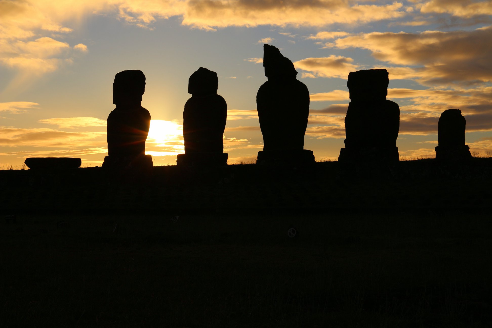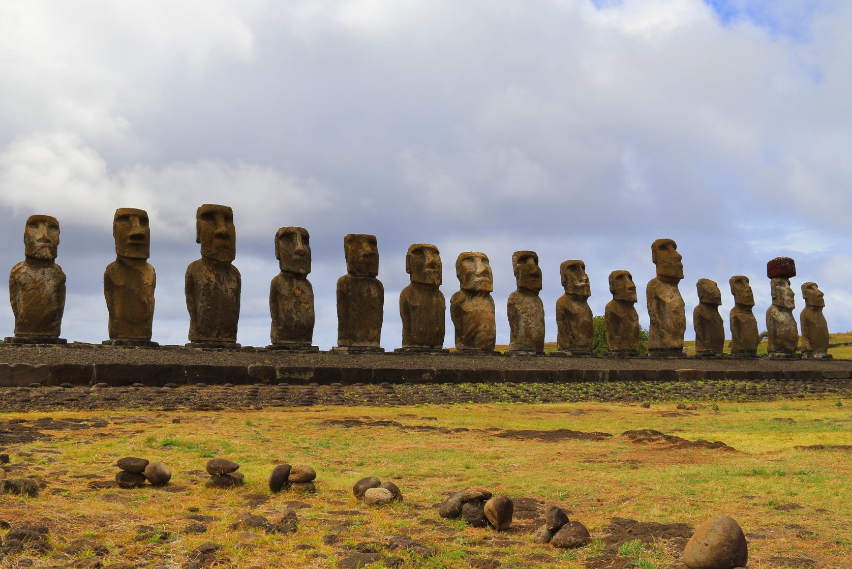 Perto da Fábrica de Moais estão alinhados quinze gigantes de pedra. A estrutura conhecida como Ahu Tongariki, foi reconstruída em 1996 por uma fábrica japonesa com o objetivo de mostrar aos visitantes como os Moais eram antes de serem derrubados. É um dos cartões-postais mais famosos da Ilha de Páscoa e é o maior monumento de todo o Pacífico Sul.
