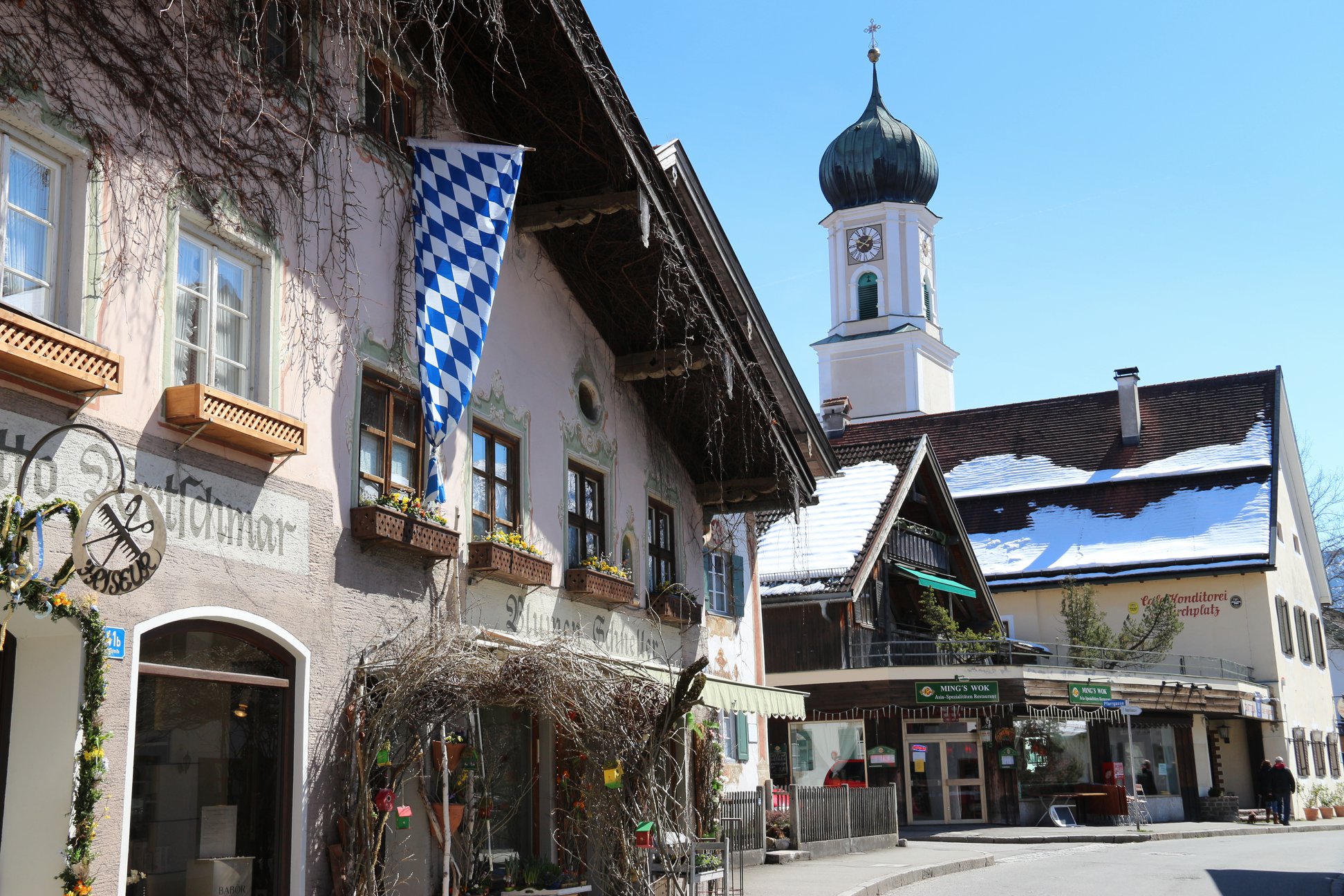 Um dos pontos turísticos que não podem ser esquecidos na passagem por Oberammergau é a igreja de São Pedro e São Paulo. Ela foi construída entre 1735-40 e chama a atenção pelo estilo rococó. Impossível não se encantar por todos esses detalhes que a cidade nos presenteia. Mesmo pequena, Oberammergau vale uma passada lenta e com encantadores cliques fotográficos. Para não deixar passar no seu próximo roteiro pela Alemanha, a dica é incluir Oberammergau na rota de passagem pelo Palácio de Linderhof e o Mosteiro de Ettal, ambos em curta distância.